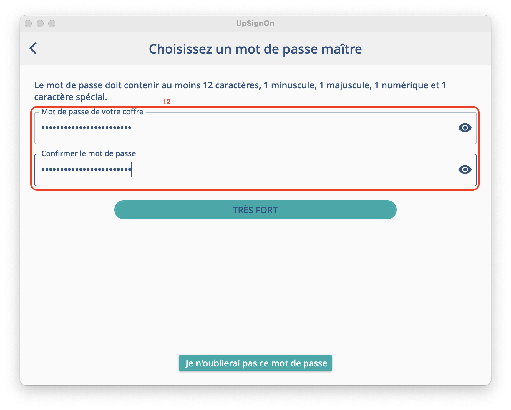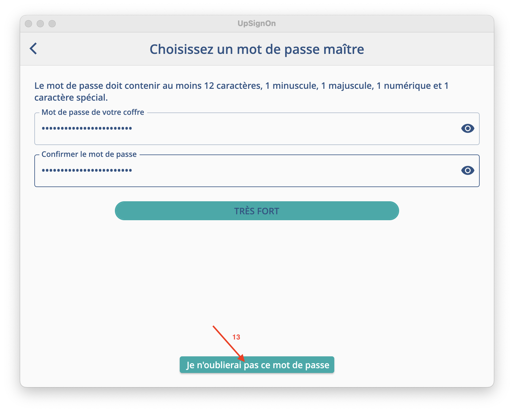 - 12 - Choisissez un mot de passe maître contenant au moins