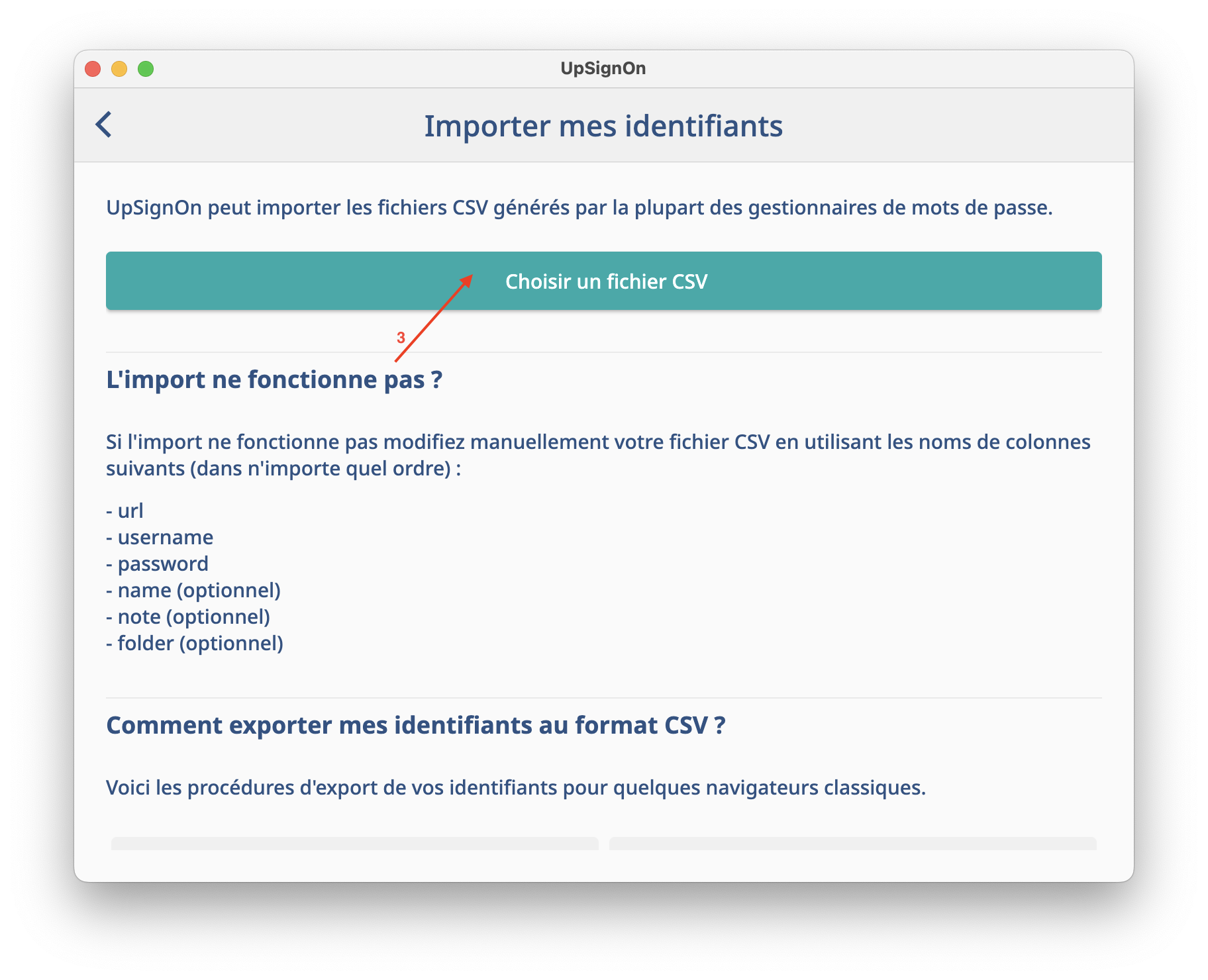 - 3 - Cliquez sur le bouton “Choisir un fichier CSV”