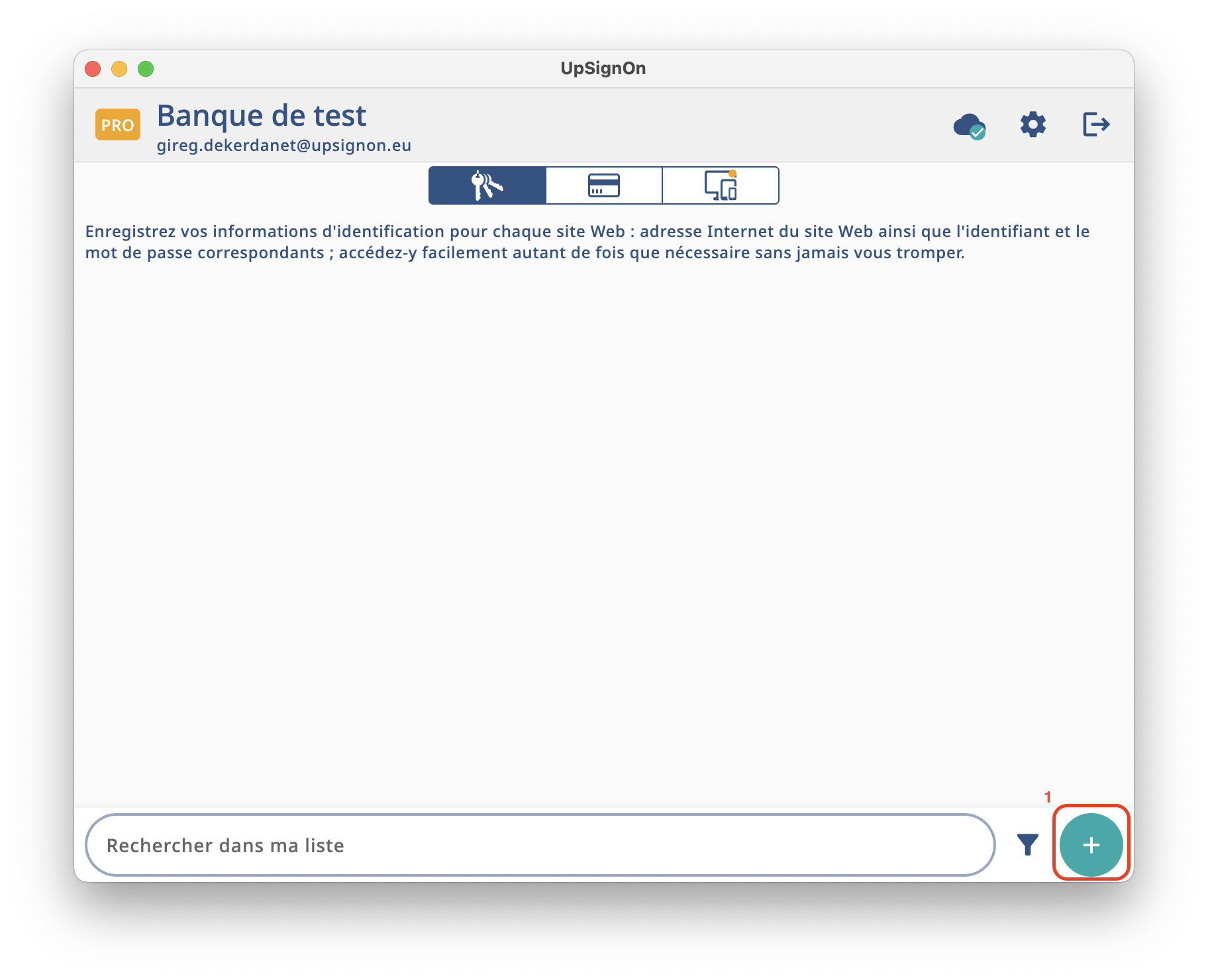 - 1 - Depuis votre coffre-fort PRO déverrouillé, cliquez sur le bouton + vert en bas à droite