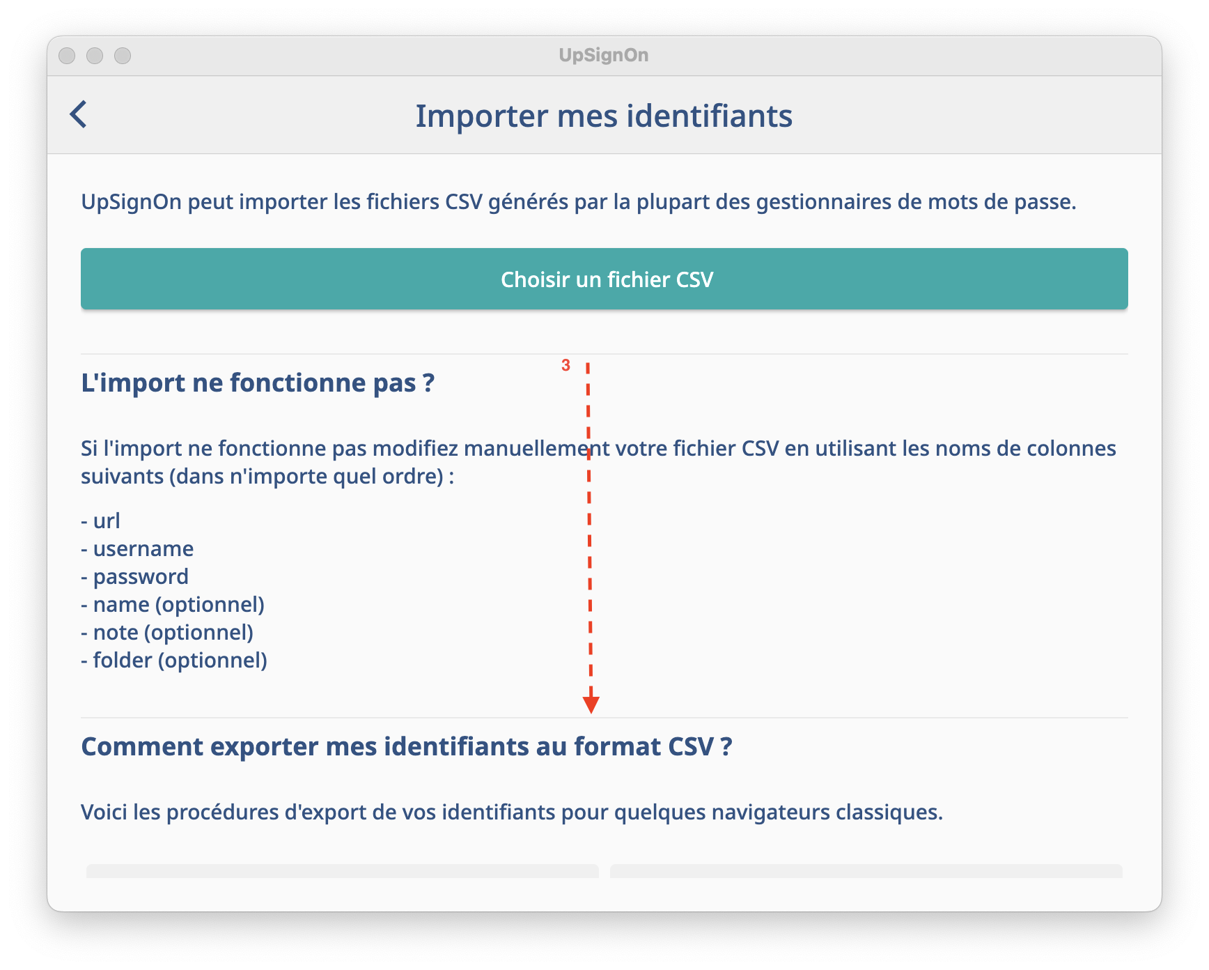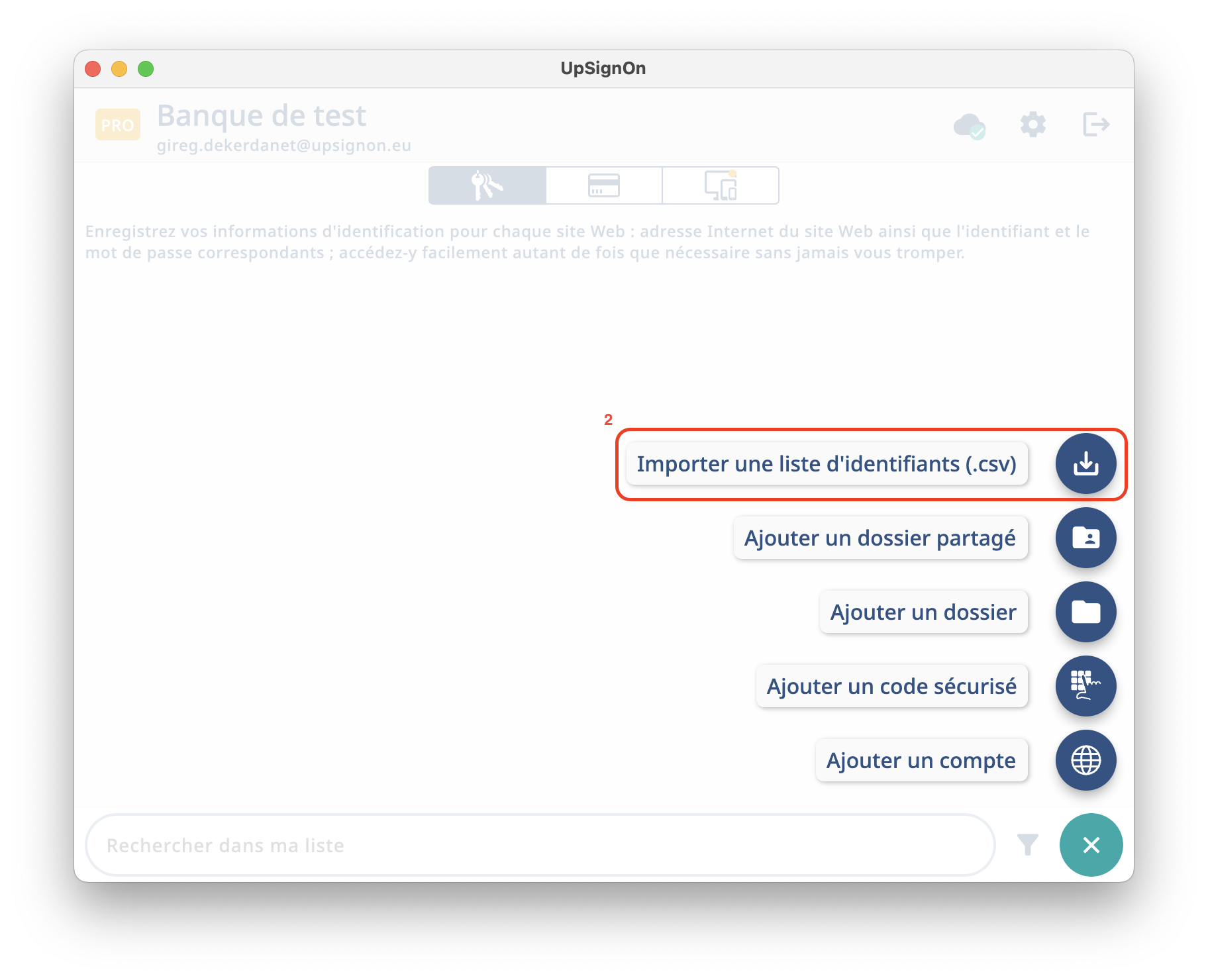 - 2 - Cliquez sur l’option “Importer une liste d’identifiants (.csv)