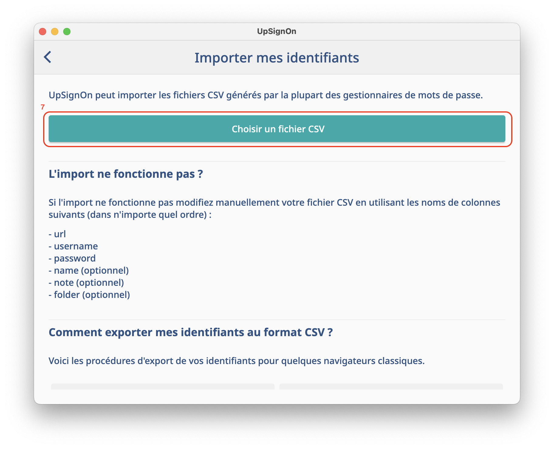 - 7 - Revenez en haut de la page puis cliquez sur le bouton “Choisir un fichier CSV”