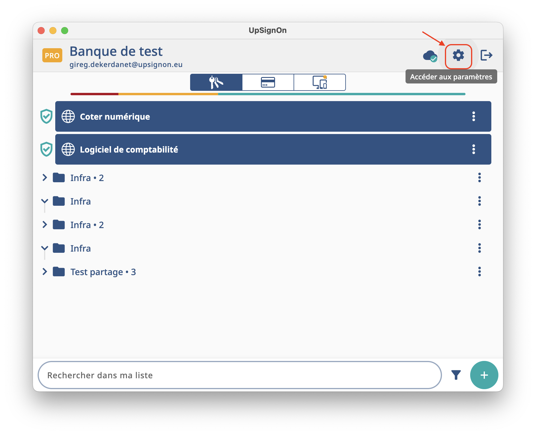 - 1 - Dans votre coffre-fort déverrouillé, cliquez sur le bouton “Accéder aux paramètres”