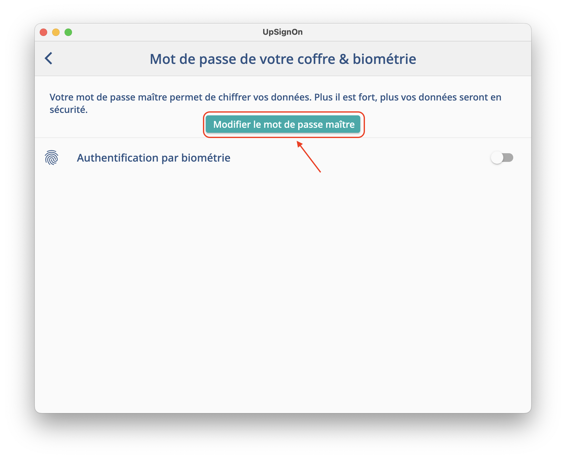 - 3 - Cliquez sur le bouton “Modifier le mot de passe maître”