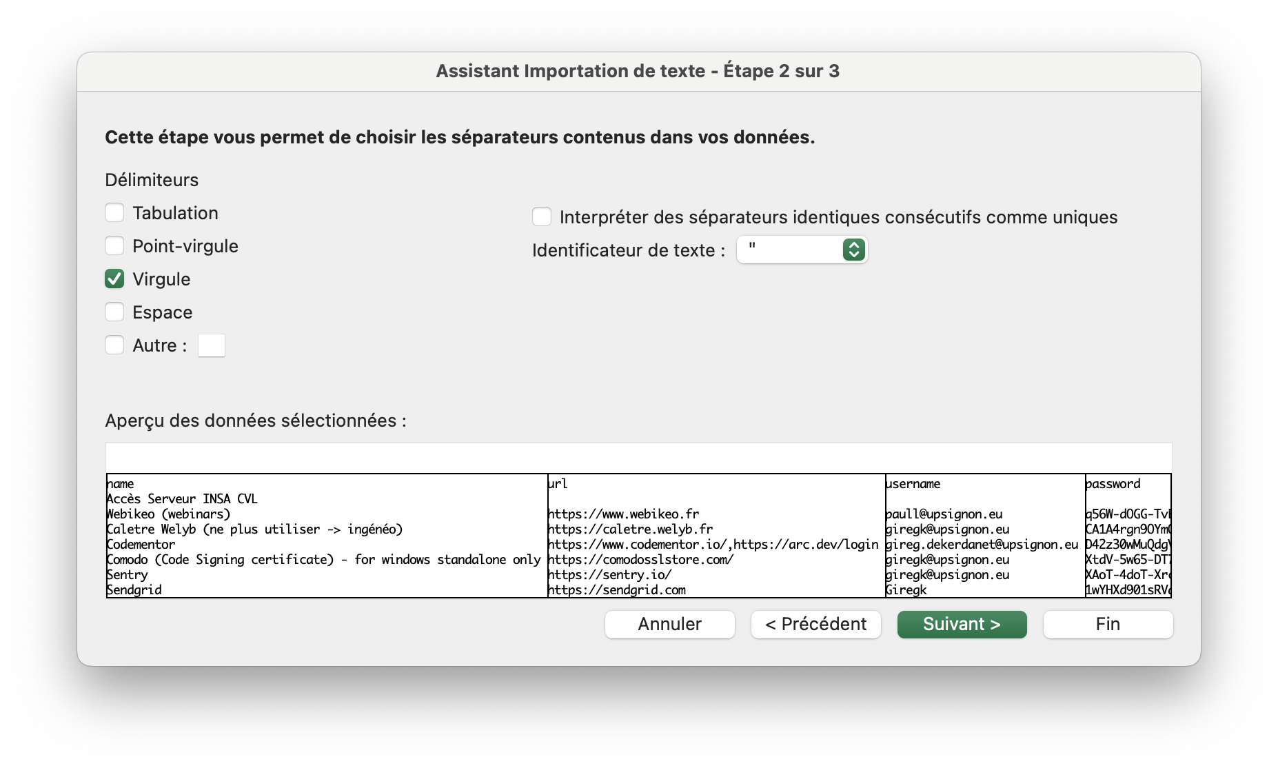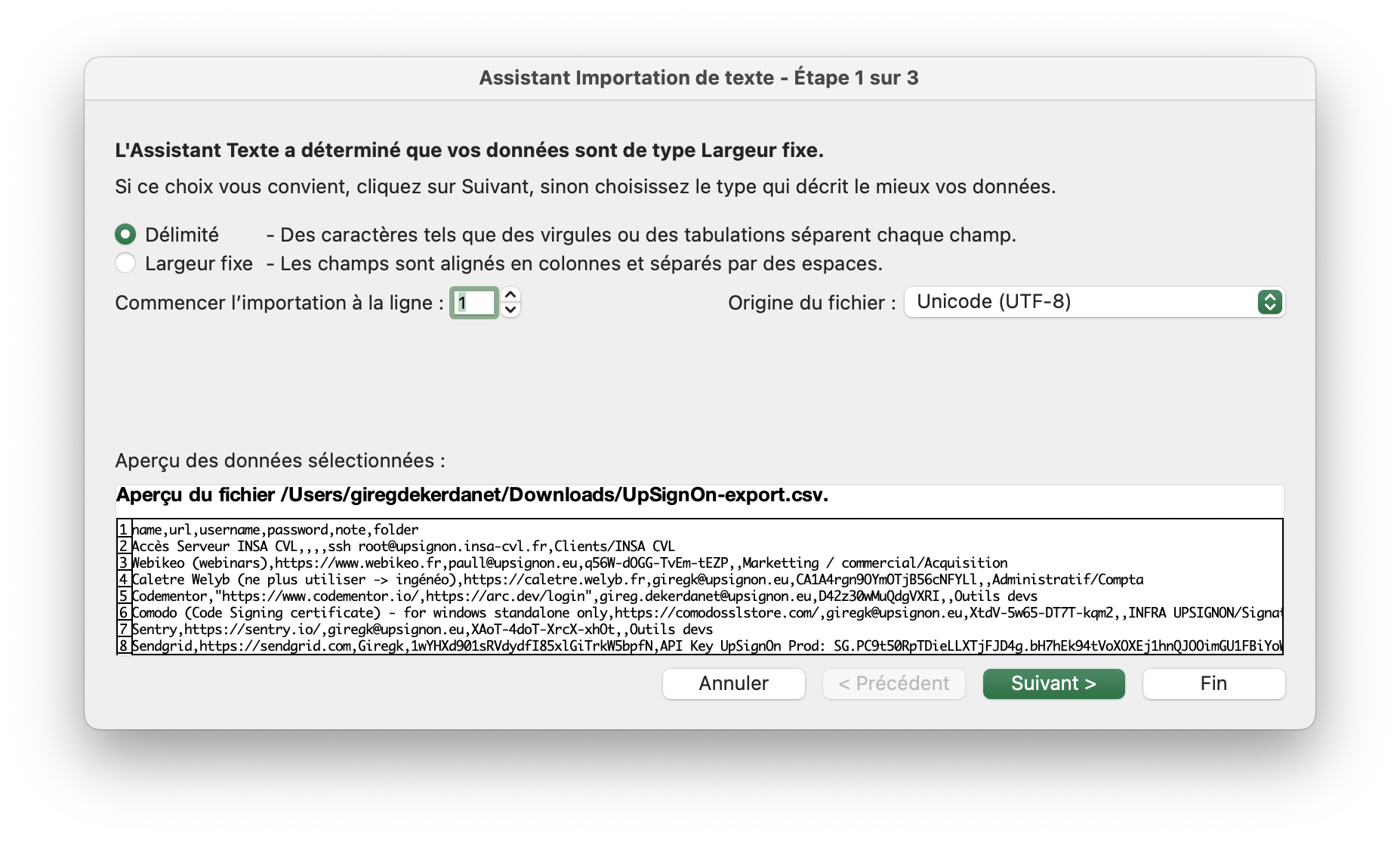 - Sélectionnez votre fichier UpSignOn-export.csv puis cliquez sur “Obtenir les données”